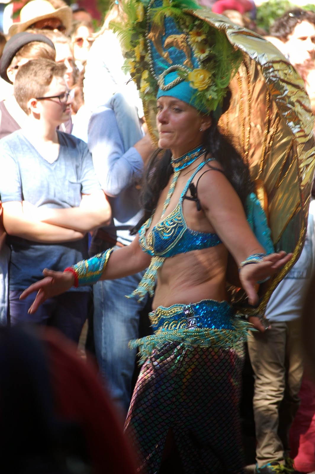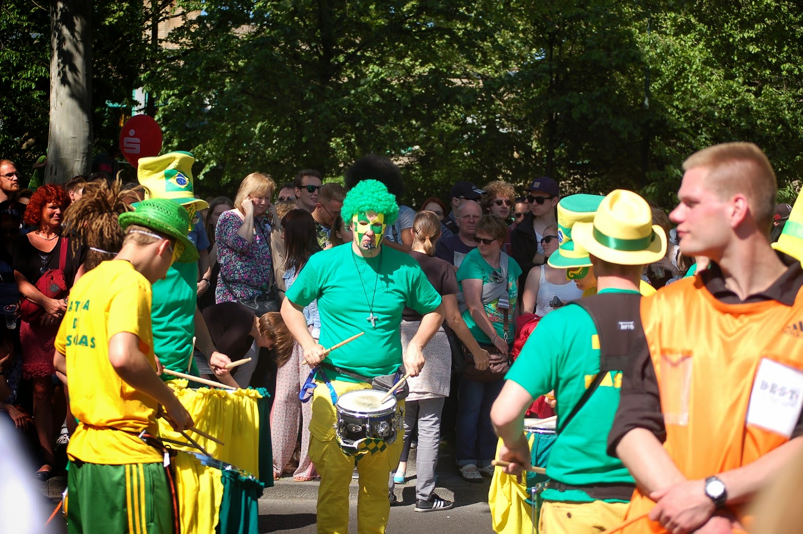 Schon lange bevor die Sambatänzer da waren, hörte man die Musik und die Hüften wippten schon im Takt mit. Die farbenfrohen Kostüme, oder das was da noch Kostüm war, schimmerten im Sonnenlicht. Nur gut, dass es Gestern wiedereinmal so schönes Wetter gab.