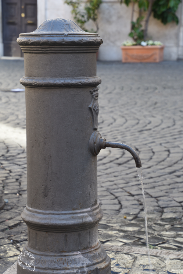 Apropos Wasser. Wusstest du, dass zweieinhalb Tausend dieser „Nasoni“ in der ganzen Stadt verteilt sind? Die Römer schwören auf ihre Trinkbrunnen. Wer es kann, der hält die Wassernase mit dem Daumen zu und lässt sich das Wasser, durch ein kleines Loch oberhalb der Nase, direkt in den Mund spritzen. Ich habe es versucht, habe mich nicht nass gemacht und fand das Wasser köstlich. Das Wasser kommt seit der Antike über Aquädukte und Leitungen aus den Bergen. Was in den Brunnen sprudelt, ist dagegen nicht unbedingt genießbar.