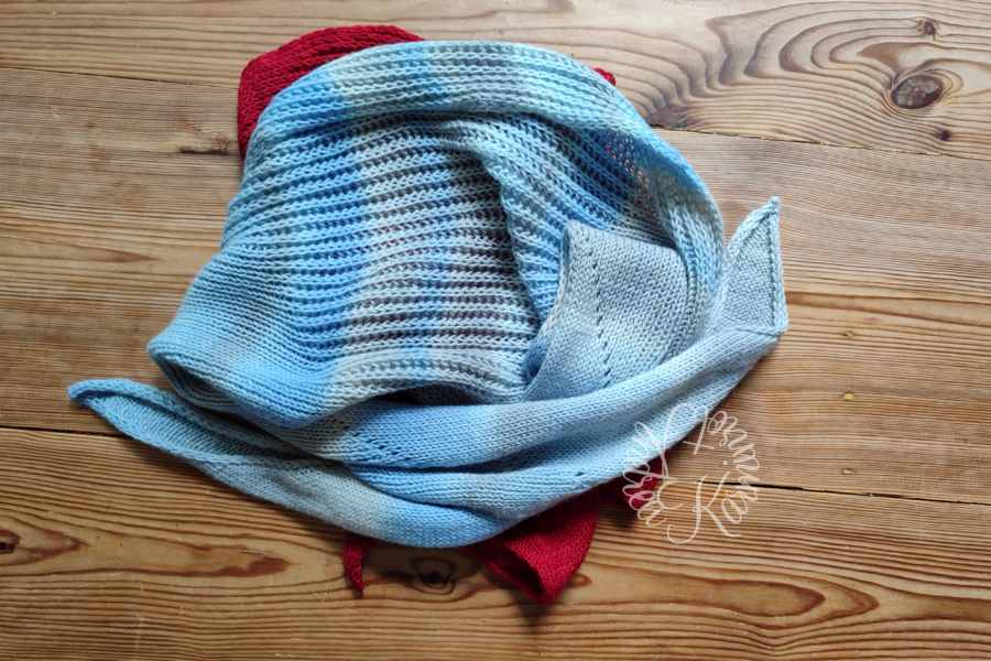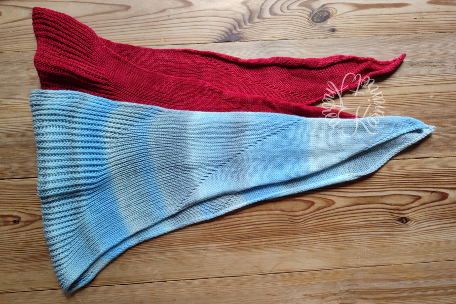 Ich habe angefangen, den Schals Namen zu geben. Sie wandern übrigens in eine Kiste, damit ich anderen eine Freude machen kann. Der blaue Flausch ist übrigens zu meiner Schwester umgezogen. Sie durfte sich einen aussuchen. Der letzte heißt also der Hochzeits-Lillekolding und ist ebenfalls aus einem Sockengarn gestrickt. Das ist aber auch so weich und flauschig, dass man den gerne am Hals tragen mag. Der wurde aus Lang Yarns Super Soxx Cashmere Color 4 ply gestrickt. Auch dieser Schal hat eine Länge von 140 cm.