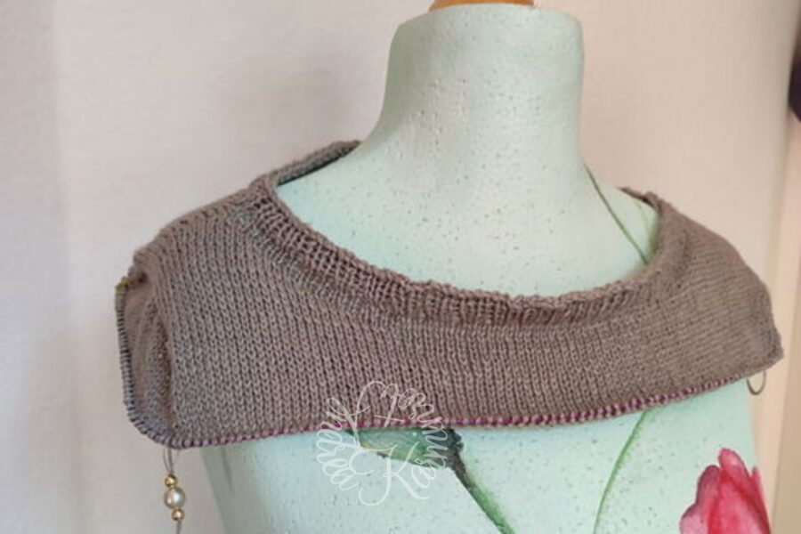 Chris strickt ja immer wieder ganz interessante Schulterpartien. Ich staune immer wieder, was sie sich so ausdenkt. Das Shirt sitzt an den Schultern wirklich gut. Sie hat ein tolles Garn für ihr eigenes Knit-Shirt benutzt. Ich hatte noch das Natural Knits Summer Cashmere von Lana Grossa in meiner Kiste. Daraus wollte ich eigentlich etwas ganz anderes stricken. Aber wie das immer so ist, wenn man die Knäule ohne Idee in die Wollkisten legt, dann vergesse ich meistens wieder, was ich daraus machen wollte. Bei neu gekauften Garnen ist das nicht mehr der Fall, da lege ich gleich einen Notizzettel dazu, was das werden soll. Wenn ich dann an einem anderen Tag eine neue Idee haben sollte, dann ist das eben so.