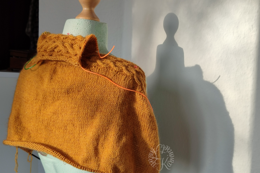 Wiedereinmal habe ich mich zu einem Teststrick überreden lassen. Ich finde die Jacke auch einfach zu schön. Außerdem hatte ich die Gelegenheit genutzt, sie in dem Originalgarn zu stricken. Ein Traum aus Lamana Como und Lamana Premia. Die Wolle ist so ein Leichtgewicht, dass die vielen Zöpfe gar nicht ins „Gewicht“ fallen. Und sie hat verdammt viele Zöpfe. Einen wunderschönen Schalkragen und einen Zopf über die Schultern. Ach, ich freue mich schon auf das fertige Jäckchen. Obendrein habe ich mich für die Farbe „Curry“ entschieden. Ich habe so das Gefühl, das wird meine neue Lieblingsfarbe.