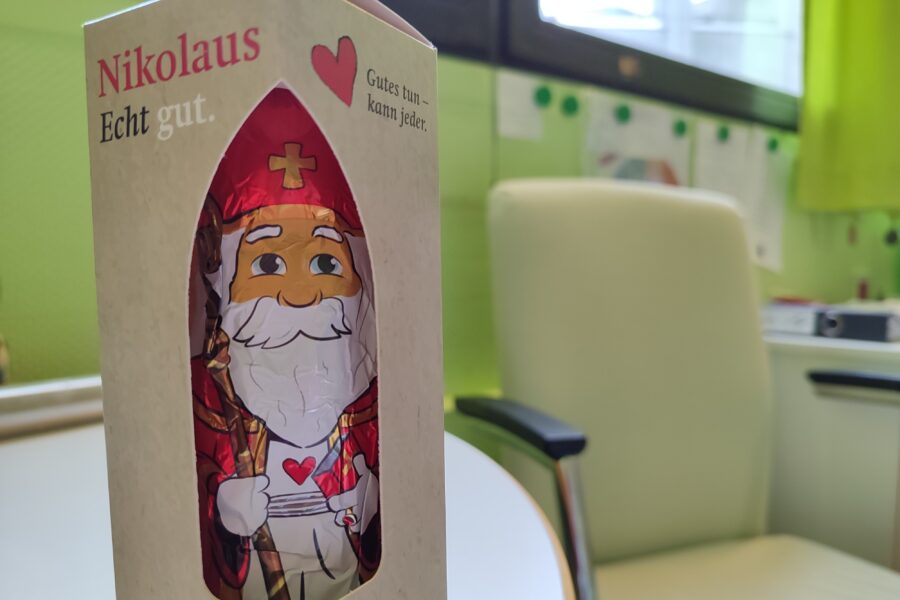 Zwischendurch hatte ich ein Tief und habe mich in das Chefinnenzimmer verzogen. Ich hatte ein Tief und brauchte eine kurze Auszeit. Dafür schnorrte ich mir einen Weihnachtsmann.