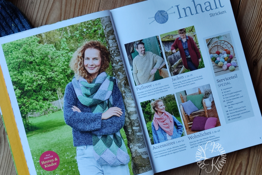 Zwischendrin finden sich kleine Interviews mit der Strickdesignerin Tanja Steinbach, die den Titelpullover entworfen hat.